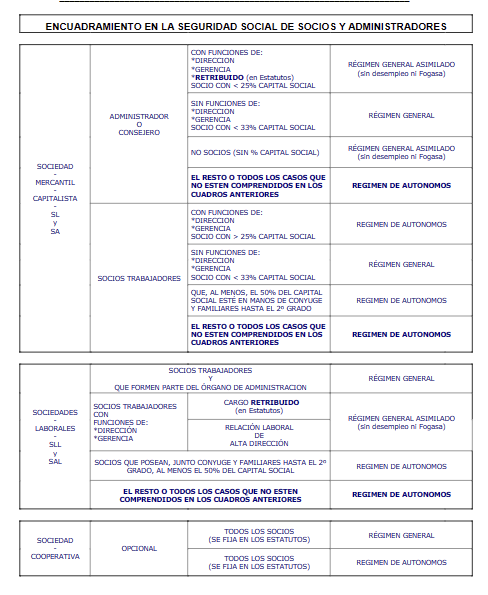 En cualquier caso, todos los trabajadores están obligados a estar dado de alta en la Seguridad Social, sea en el RETA o en el Régimen General..#RBAsesoria Compartir en XLa siguiente imagen resume los diferentes encuadramientos en la Seguridad Social dependiendo de la condición de socio y/o administrador.